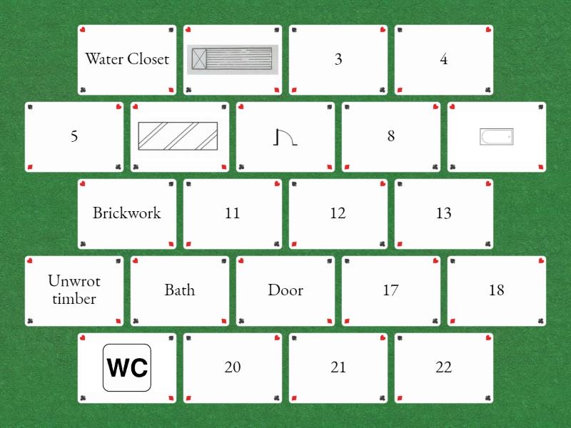 Water Closet, Door, Bath, Brickwork, Unwrot timber, Wrot timber, Blockwork, Concrete, Hardcore, Subsoil/Earth, Insulation,