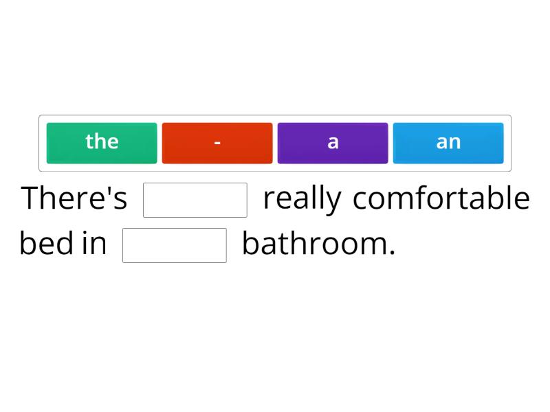 I put the dishes in ____ cupboard. There's ____ TV in the kitchen. I've got ____ dog and a cat. ____ dog's name is Leo. This is ____ useful activity. We often play tennis at ____ weekend. This is ____ lovely car. There's ____ really comfortable bed in ____ bathroom. Can you open ____ curtains, please? Jia works at ____ night. It's ____ nice room, but I don't like ____ carpet. I'm in ____ garden. Put your clothes in ____ wardrove. The car is in ____ garage. Why don't you open ____ door? The dog wants to come inside. There's some cola in ____ fridge.