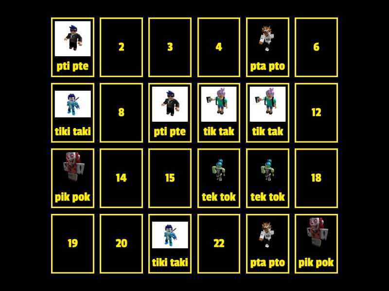 tik tak, pik pok, tiki taki, tek tok, pta pto, pti pte, ptu pta, tyk tuk, tuk tak, pto pty, top typ, pyk pik,