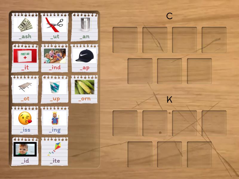 C: _an, _ap, _ash, _orn, _ot, _up, _ut, K: _iss, _id, _it, _ind, _ite, _ing,
