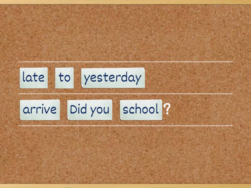Did you arrive late to school yesterday?, Did you visit your family last weekend?, Where did you go in the morning?, Did you swim in the pool?, What did you do every day?, Did you go to Cuautla last year?, When did your combi leave?, Did you drink coffee in the morning?, Did your parents travel to Cuernavaca last month?, Did you do your homework?,