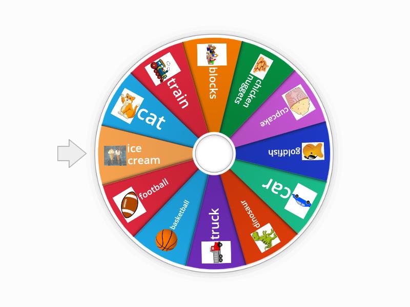 cat, train, blocks, chicken nuggets, cupcake, goldfish, car, dinosaur, truck, basketball , football , ice cream.