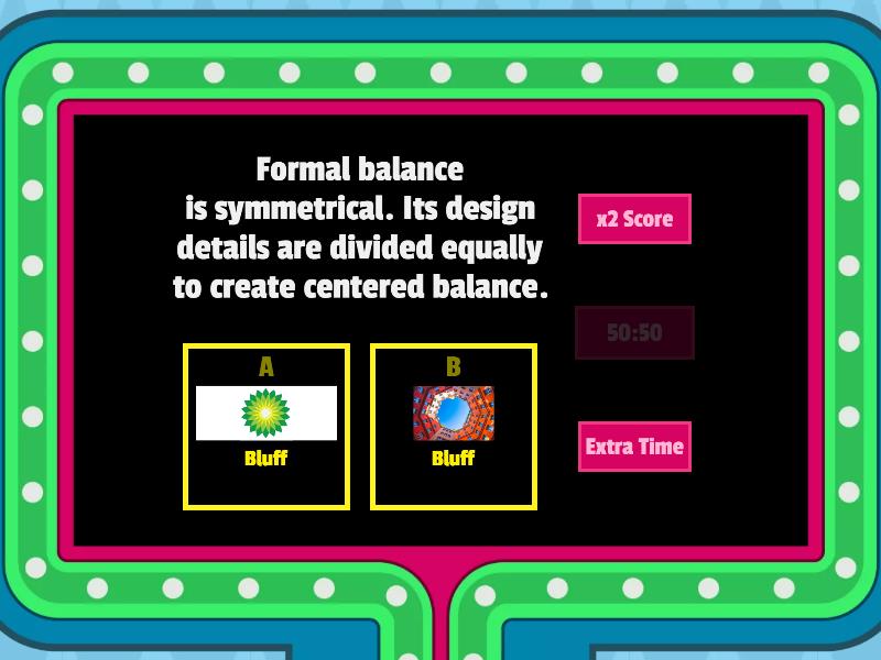1) Formal balance is symmetrical. Its design details are divided equally to create centered balance. a) Bluff b) Bluff 2) What principles of design is this? a) Gradation b) Harmony 3) Emphasis is a center of interest that draws attention to the focal point of garment. a) False b) True 4) Which among the pictures below symbolizes repetition design. a) b) 5) Gradation Design a) b) c) All of the above 6) Below are the example of contrast a) b)