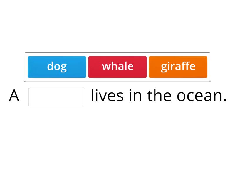 A ____ lives in the ocean. My ____ is fast in the water. Will you ____ your cookies with me? I saw a ____ in the zoo. my little brother sucks his ____. The ____ sank in the ocean. My ____ lives on a farm. My friends ____ when they walk.