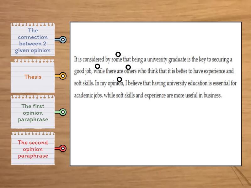 The first opinion paraphrase, The second opinion paraphrase, Thesis, The connection between 2 given opinion .