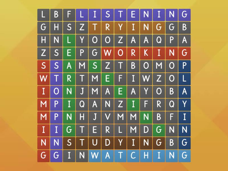 seeing, listening , working, watching, studying, playing, trying, learning, stopping, swimming ,