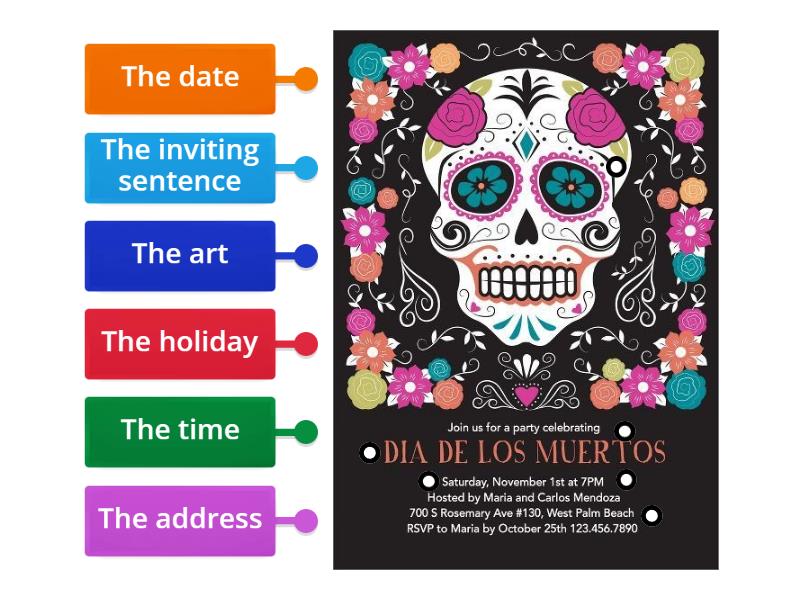The inviting sentence, The holiday, The date, The time, The address, The art.