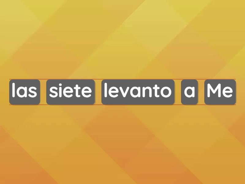 Me levanto a las siete, Me ducho a las siete y cuarto, Desayuno a las siete y media, Me lavo los dientes a las ocho menos diez, Salgo de casa a las ocho con mi hermano,