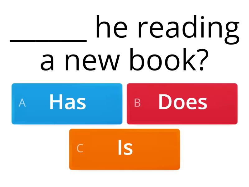 1) ______ he reading a new book? a) Has b) Does c) Is 2) ______ they playing games now? a) Is b) Are c) Can 3) Is John ______ a video on YouTube? a) watches b) watch c) watching 4) ______ the dog sleeping in the living-room? a) Are b) Is c) Am 5) ______ the cats running in the street? a) Am b) Are c) Is 6) ______ she opening the window? a) Do b) Does c) Is 7) Are we ______ rice now? a) cooks b) cooking c) cook 8) ______ Antonia drinking Fanta or Coca-Cola? a) Is b) Am c) Are 9) ______ the children paying attention in class? a) Is b) Can c) Are