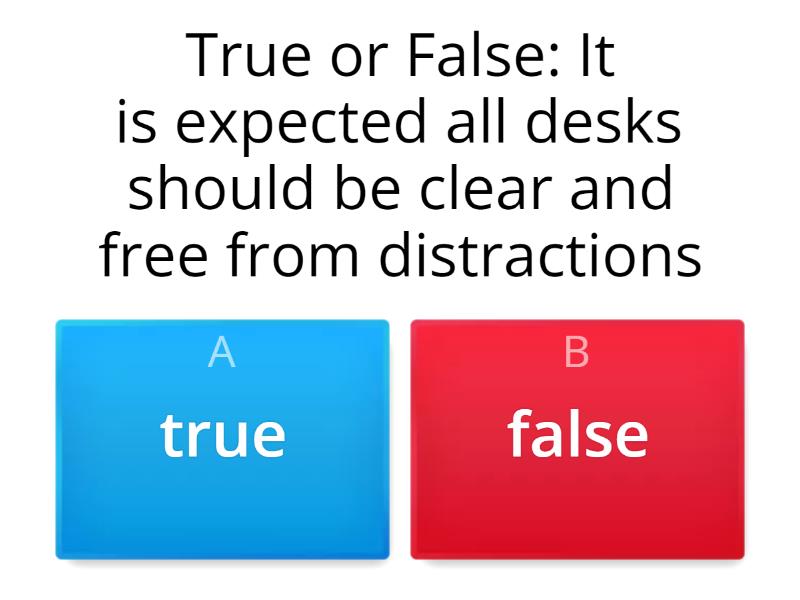 1) True or False: It is expected all desks should be clear and free from distractions a) true b) false 2) When should you use hand signals? a) only for bathroom and water b) only when the teacher tells you c) always use them 3) True or False: A contract is a written or spoken agreement. a) true b) false 4) When can we talk during SEL? a) answering a question b) during groupwork c) both choices a and b 5) Should we get out of our seats to ask a question?  a) Yes if it's important b) Duh - of course we can c) stay in your seats to ask a question 6) Will there be time for talking? a) Yes - during groupwork b) Some lessons c) Not at all 7) How do you get the teacher's attention? a) Yelling for them. b) Raising a hand. c) Tapping them on the shoulder.