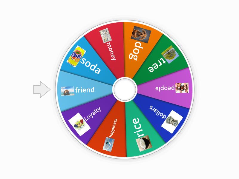 soda, money, dog, tree, people, dollars, rice, happiness, Loyalty, friend.