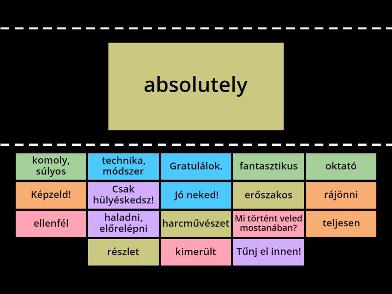 teljesen - absolutely, fantasztikus - awesome, Gratulálok. - Congratulations!, részlet - detail, kimerült - exhausted, Tűnj el innen! - Get out of here!, Képzeld! - Guess what!, oktató - instructor, Jó neked! - Lucky you!, harcművészet - martial arts, ellenfél - opponent, haladni, előrelépni - progress, rájönni - realize, komoly, súlyos - serious, technika, módszer - technique, erőszakos - violent, Mi történt veled mostanában? - What have you been up to?, Csak hülyéskedsz! - You're kidding!,