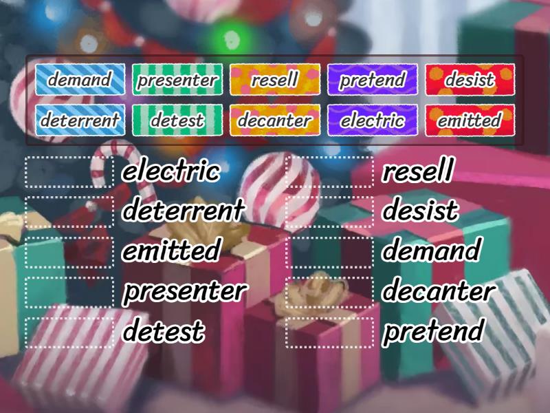 emitted - emitted, detest - detest, resell - resell, demand - demand, desist - desist, pretend - pretend, decanter - decanter, electric - electric, presenter - presenter, deterrent - deterrent,
