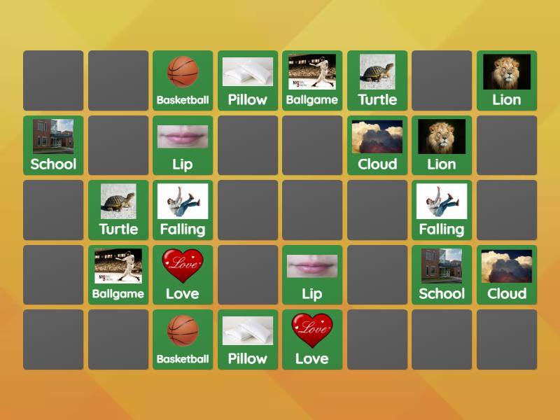 Lion, Love, Lip, Ballgame, Pillow, Falling, Turtle, Basketball, School, Cloud, Clay, Clip, Playground, Plate, Plug, Blue, Black, Blow, Slide, Slip,