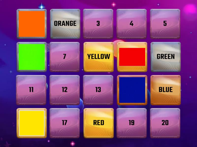 RED, GREEN, BLUE, YELLOW, ORANGE, PURPLE, BLACK, WHITE, PINK, GRAY,