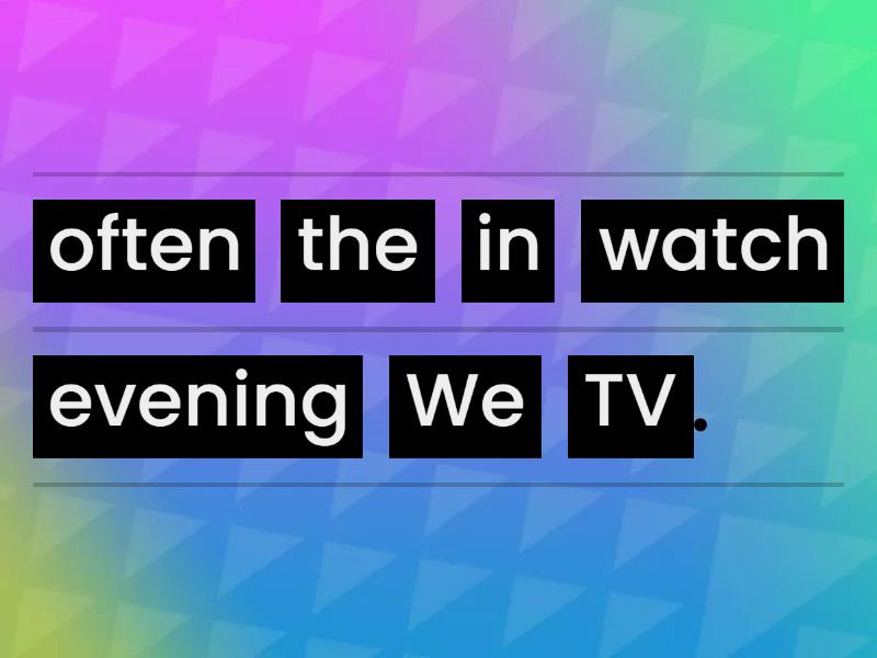 We often watch TV in the evening., Boys never watch romantic films., Their teacher sometimes watches quiz shows., My dad always watches the news at six o'clock., Our family always goes to the seaside in summer., Ellie rarely watches the news and sports programmes. ,