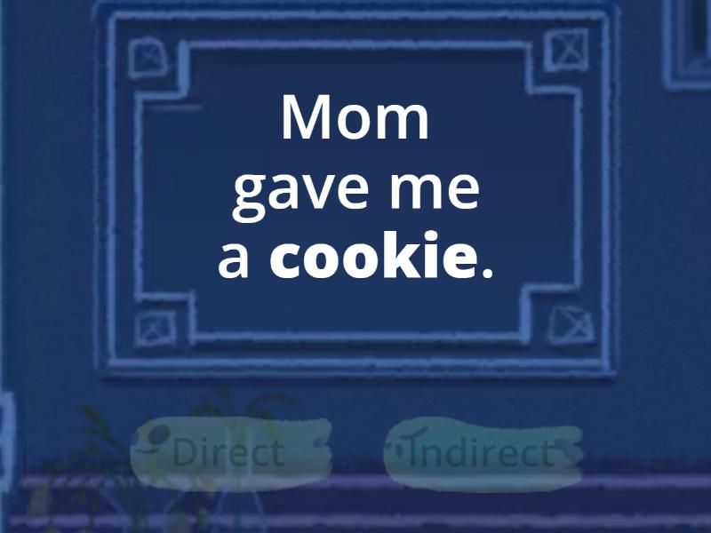 Direct: Mom gave me a cookie., Mom gave a cookie to me., Pass the plate to your mom., She gave the ball to her friend., She gave her friend the ball., He told us a funny story., We bought a toy for our cat., Jake taught the dog a new trick., Tia spilled lemonade on the floor., I got a gold star on my homework., Indirect: Mom gave a cookie to me., Mom gave me a cookie., Pass the plate to your mom., She gave the ball to her friend., She gave her friend the ball., He told us a funny story., We bought a toy for our cat., Jake taught the dog a new trick., Tia spilled lemonade on the floor., I got a gold star on my homework.,