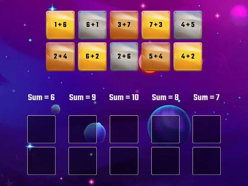 Sum = 6: 4 + 2, 2 + 4, Sum = 9: 4 + 5, 5 + 4, Sum = 10: 3 + 7, 7 + 3, Sum = 8: 2 + 6, 6 + 2, Sum = 7: 1 + 6, 6 + 1,