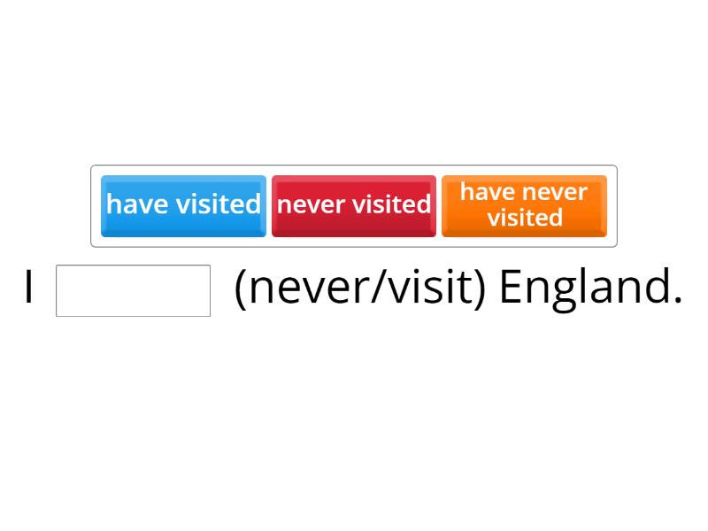 I ____ (never/visit) England. John ____ (already/tell) me Simon's secret. He ____ (just/eat) his dinner. He hasn't done his homework ____ . Have you ____ been to England? Maria has ____ finished her lunch. Miguel has ____ failed an exam. A: Where is mom?B: She has ____ to the cinema. Martin has ____ screamed. They ____ an exotic bird.