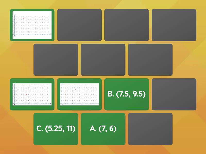 A. (7, 6), B. (7.5, 9.5), C. (5.25, 11), D. (4, 8.5), E. (9.5, 5), F. (11, 2.75), G. (13.5, 0),