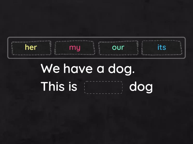 We have a dog. This is ____ dog This is a picture of my friend. He is ____ best friend When do Mr and Mrs. Smith buy ____ new television? The cat has a blanket. This is ____ blanket. Ali has many books. These are ____ books Marian and Jenifer like ____ new teacher The cat has a fish. This is ____ fish Do you think your father like ____ birthday present? They have a car. This is ____ car. We still have twenty more minutes before ____ class begins Lan has a teddy bear. This is ____ teddy bear. The dogs have a bag of bones. These are ____ bones Brazil is located in South America. ____ capital city is Brasilia I really like new home, especially ____ location. The dog has a tail. This is ____ tail.