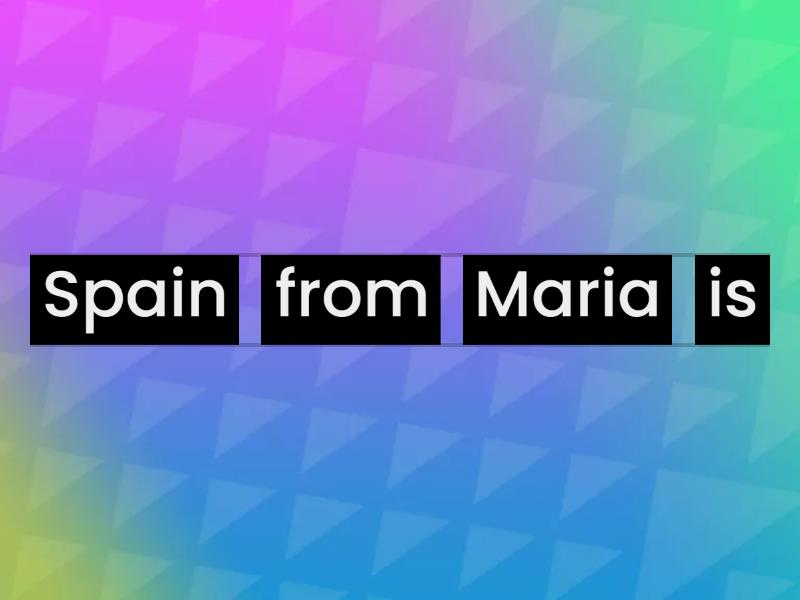 Maria is from Spain, He is a new football player, Is he my taxi driver?, Where are you from?, Where is he from?, She isn't from Mexico, she's from the UK, Where is Svetlana from? , Adam is a new school teacher, Is John an office worker? , She is from Thailand,