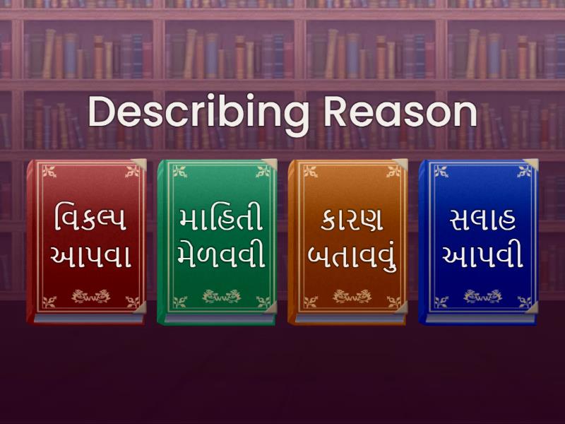 1) Describing Person a) વ્યક્તિનું વર્ણન b) વસ્તુનું વર્ણન c) પ્રક્રિયાનું વર્ણન d) સમયનું વર્ણન 2) Describing Process a) વ્યક્તિનું વર્ણન b) વસ્તુનું વર્ણન c) પ્રક્રિયાનું વર્ણન d) સમયનું વર્ણન 3) Describing Thing a) વ્યક્તિનું વર્ણન b) વસ્તુનું વર્ણન c) પ્રક્રિયાનું વર્ણન d) સમયનું વર્ણન 4) Indicating Contrast a) વિરોધાભાસ b) વિકલ્પ આપવો c) રોજિંદી વાતચીત d) લાગણીઓ વ્યક્ત કરવી 5) Describing Location a) વિરોધાભાસ b) જગ્યાનું વર્ણન c) રોજિંદી વાતચીત d) લાગણીઓ વ્યક્ત કરવી 6) Describing Action a) ક્રિયાનું વર્ણન b) જગ્યાનું વર્ણન c) રોજિંદી વાતચીત d) પ્રક્રિયાનું વર્ણન 7) Expressing Proposal a) ઈચ્છા મૂકવી b) શરત c) ક્ષમતા બતાવવી d) હેતુસુચક 8) Expressing Purpose a) ઈચ્છા મૂકવી b) શરત c) ક્ષમતા બતાવવી d) હેતુસુચક 9) Describing Past Event a) ઈચ્છા મૂકવી b) ભૂતકાળની ઘટના c) ક્ષમતા બતાવવી d) હેતુસુચક 10) Expressing Advice a) ઈચ્છા મૂકવી b) ભૂતકાળની ઘટના c) ક્ષમતા બતાવવી d) સલાહ આપવી 11) Expressing Ability  a) ઈચ્છા મૂકવી b) ભૂતકાળની ઘટના c) ક્ષમતા બતાવવી d) સલાહ આપવી 12) Expressing Possibility a) ઈચ્છા મૂકવી b) સંભાવના c) ક્ષમતા બતાવવી d) સલાહ આપવી 13) Expressing Necessity a) ઈચ્છા મૂકવી b) ફરજિયાત c) ક્ષમતા બતાવવી d) સલાહ આપવી 14) Inquiry as Nature a) ઈચ્છા મૂકવી b) માહિતી મેળવવી c) ક્ષમતા બતાવવી d) સલાહ આપવી 15) Seeking Information a) ઈચ્છા મૂકવી b) માહિતી મેળવવી c) ક્ષમતા બતાવવી d) સલાહ આપવી 16) Expressing Alternatives a) વિકલ્પ આપવા b) માહિતી મેળવવી c) ક્ષમતા બતાવવી d) સલાહ આપવી 17) Describing Reason a) વિકલ્પ આપવા b) માહિતી મેળવવી c) કારણ બતાવવું d) સલાહ આપવી 18) Exchanging Niceties a) વિકલ્પ આપવા b) માહિતી મેળવવી c) કારણ બતાવવું d) રોજિંદી સારી વાતચીત 19) Exchanging Pleasantries a) વિકલ્પ આપવા b) માહિતી મેળવવી c) કારણ બતાવવું d) રોજિંદી સારી વાતચીત 20) Showing Emotions a) લાગણીઓ વ્યક્ત કરવી b) માહિતી મેળવવી c) કારણ બતાવવું d) રોજિંદી સારી વાતચીત