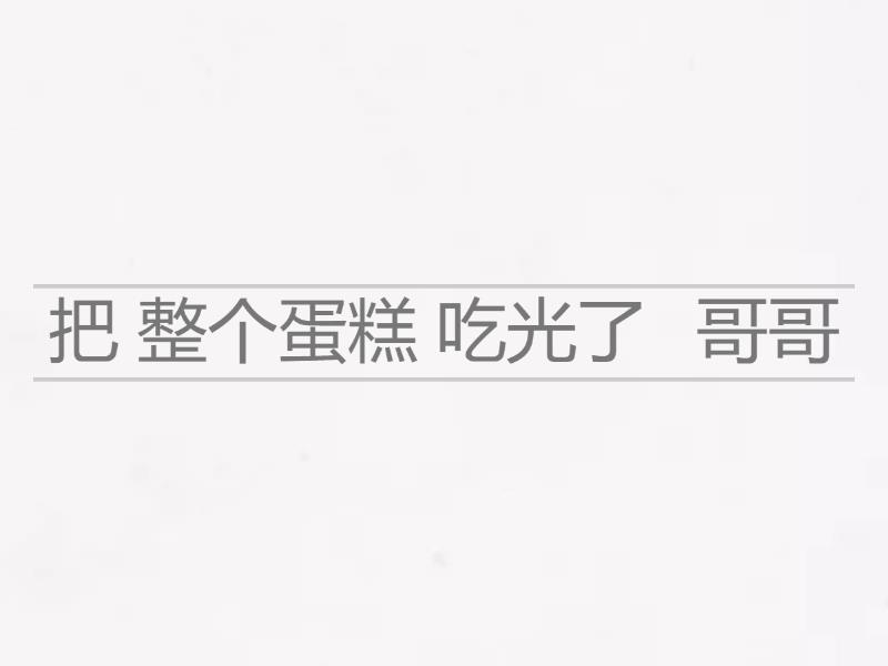 我要 把 数学功课 做完 再去玩, 哥哥 把 整个蛋糕 吃光了, 她 不小心 把 碗盘 摔 在地上, 爸爸 把 小费(tips) 放在 盘子下面,