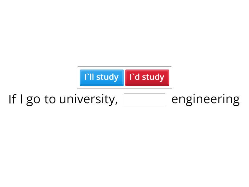 If I go to university, ____ engineering If she had her own car, she ____ borrow yours If I ____ a good degree, I`ll find a better job I`d take that job if I ____ you We can`t help you unless you ____ us what the problem is If you ____ you`re going to be late, please send me a text You ____ give a better impression if you wore a suit I ____ go there unless I really had to Dana would enjoy life more if she ____ study all time If I can`t find a cheap bike, I ____ buy one If I ____ more, I could afford to rent a flat