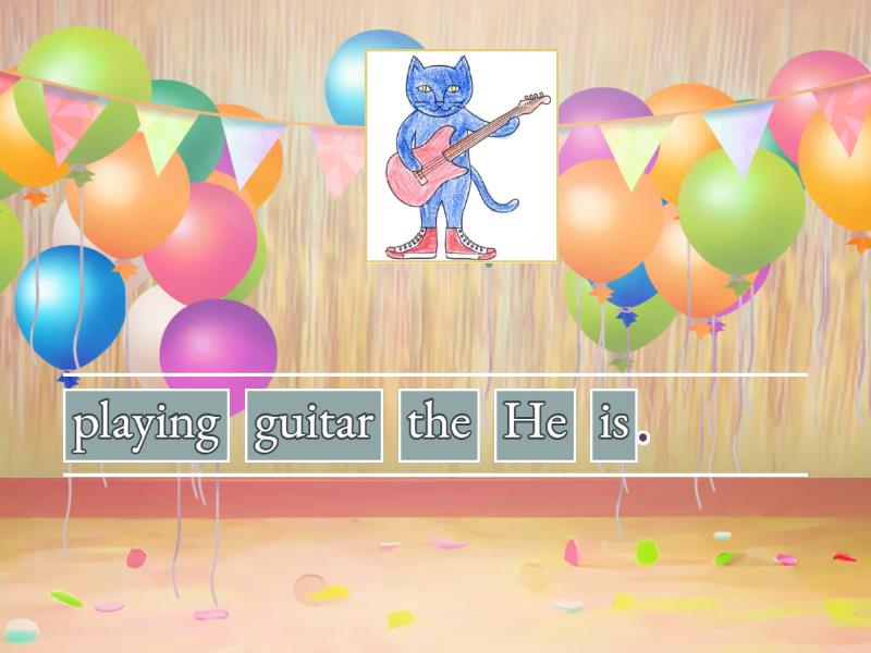 He is playing the guitar., He is reading a book., He is writing., He is eating a sandwich., He is strolling down the street., He is sliding down the slide., He is swinging., He is adding on the blackboard.,