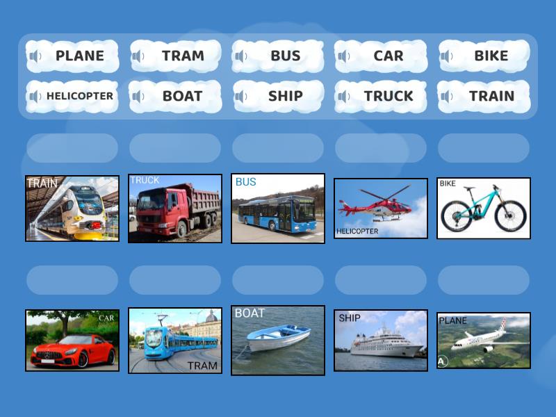 CAR, BUS, BIKE, TRUCK, TRAIN, TRAM, PLANE, HELICOPTER, BOAT, SHIP,