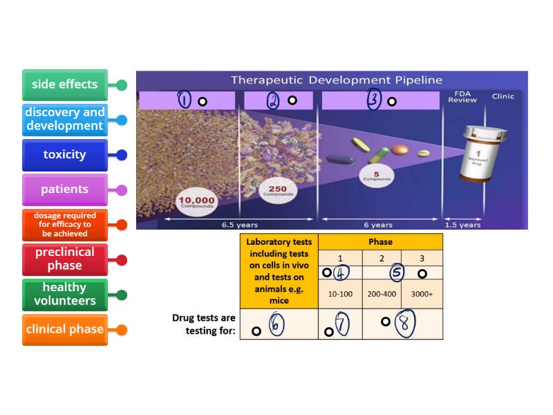 discovery and development, preclinical phase, clinical phase, healthy volunteers, patients, toxicity, side effects, dosage required for efficacy to be achieved.