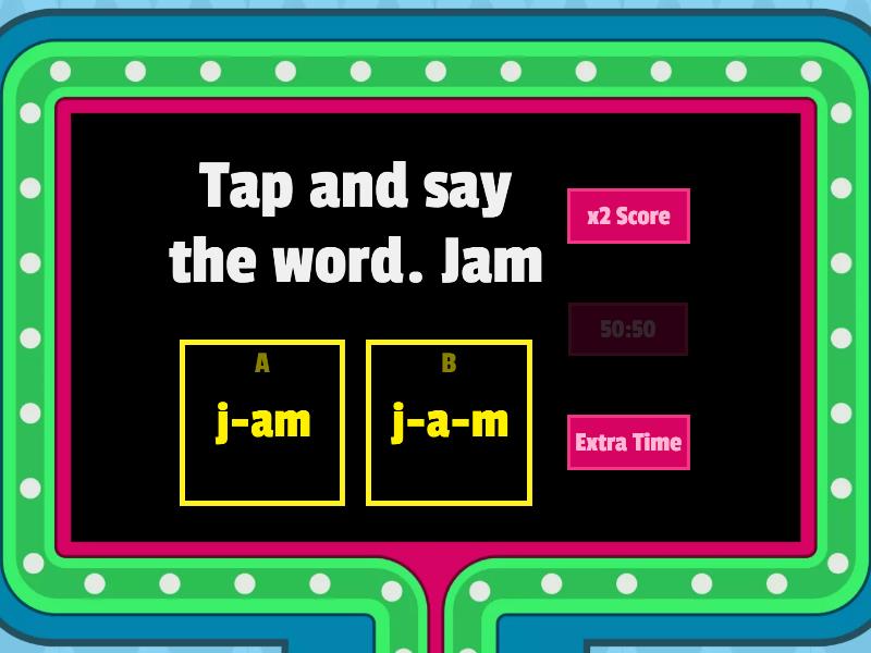 1) Tap and say the word. Jam a) j-am b) j-a-m 2) Tap and say the word. Drum a) d-r-u-m b) dr-u-m 3) Tap and say the word. Truck a) tr-u-ck b) t-r-u-ck 4) Tap and say the word. Chop a) c-h-o-p b) ch-o-p 5) Tap and say the word. Drop a) d-r-o-p b) dr-o-p 6) Tap and say the word. Jack a) j-a-c-k b) j-a-ck 7) Tap and say the word. Trip a) Tr-i-p b) T-r-i-p 8) Tap and say the word. Chat a) Ch-a-t b) c-h-a-t 9) Tap and say the word. Drag a) Dr-a-g b) D-r-a-g 10) Tap and say the word. Jab a) J-a-b b) Ja-b 11) Tap and say the word. Trap a) T-r-a-p b) Tr-a-p 12) Tap and say the word. Chap a) C-h-a-p b) Ch-a-p 13) Tap and say the word. Trunk a) Tr-u-n-k b) T-r-u-nk 14) Tap and say the word. Champ a) Ch-am-p b) Ch-a-m-p 15) Tap and say the word. Chimp a) Ch-i-m-p b) C-h-I-m-p