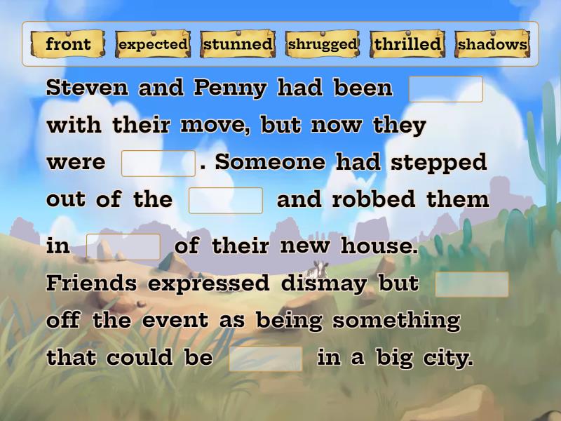 Steven and Penny had been ____ with their move, but now they were ____. Someone had stepped out of the ____ and robbed them in ____ of their new house. Friends expressed dismay but ____ off the event as being something that could be ____ in a big city. Steven and Penny ____ a meeting of all the people on the street. They ____ what had happened to them. Others told of being ____. When the meeting ended, a block watch ____ had been started.