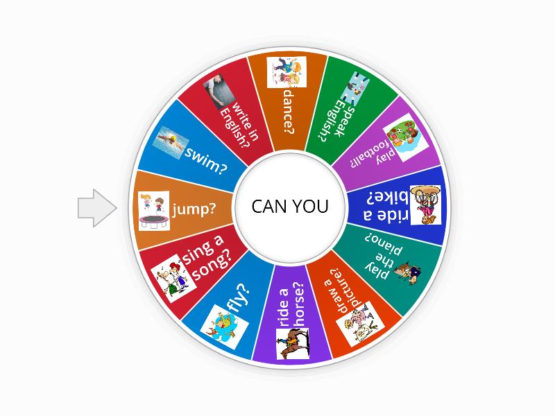 swim?, write in English?, dance?, speak English?, play football?, ride a bike?, play the piano?, draw a picture?, ride a horse?, fly?, sing a song?, jump?.