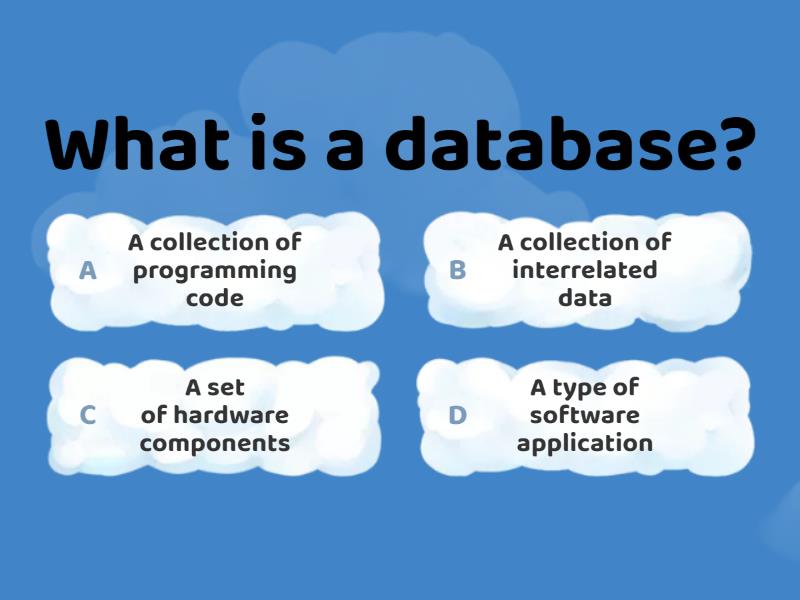 1) What is a database? a) A collection of programming code b) A collection of interrelated data c) A set of hardware components d) A type of software application 2) Which of the following is not a type of database model? a) Relational b) NoSQL c) Object-Oriented d) Binary 3) What is the purpose of a Database Management System (DBMS)? a) To create databases b) To design user interfaces c) To manage and organize data in databases d) To write programming code 4) Which term describes a collection of tables in a relational database? a) Record b) Schema c) Entity d) Database 5) In a relational database, what is a primary key? a) A unique identifier for a record in a table b) A foreign key in another table c) A mandatory field in a table d) A field that can have duplicate values