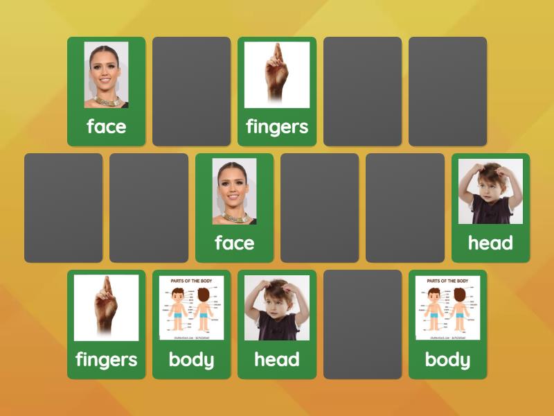 head, fingers, face, body, arms, hands, legs, feet,