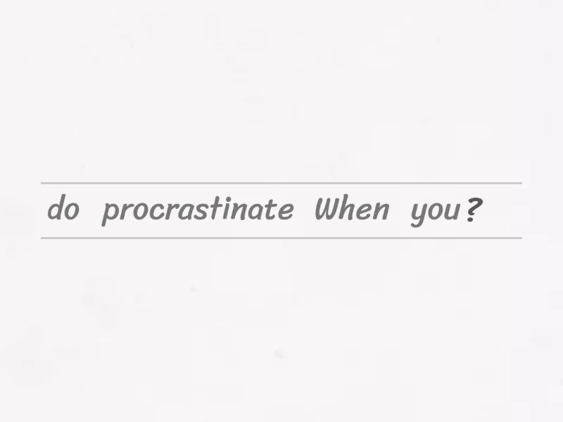 When do you procrastinate?, I procrastinate when I am unmotivated. , The weather is rainy. , What is the weather like today?, What is the minimum balance for a checking account?, The minimum balance for a checking account is 100 dollars. , What is your biggest time management challenge?, My biggest time management challenge is waking up on time. , What is one time management tip you swear by?, A time management tip I swear by is ,
