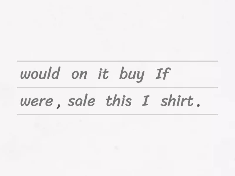 If this shirt were on sale, I would buy it. , I would buy a house if I won the lottery., Mary would move to Japan if she spoke Japanese., If you won the lottery, what would you do?, If I were taller, I would play basketball., I would buy that computer if it were cheaper., If I were a millionaire, I would buy a castle., If I met the president, I would ask him for an autograph., If I had more time, I would exercise every day., Who would you call if your car broke down?,