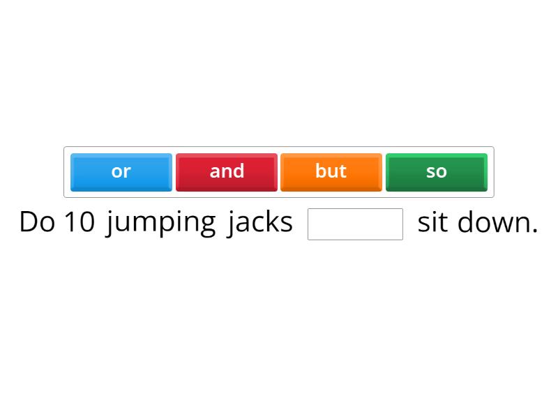Do 10 jumping jacks ____ sit down. Balance the book on your head ____ walking to the other side of the room. Bunny hop to the next course ____ hold the beanbag between your feet Dribble the ball between the cones ____ kick it into the goal. You will jump over the rope 10 times. Jump high ____ that you do not touch the rope with your feet.