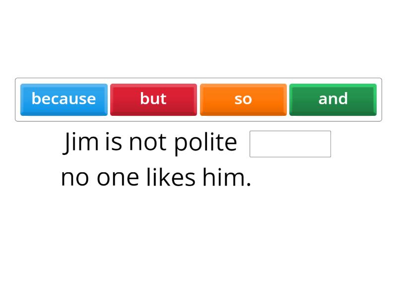 Jim is not polite ____ no one likes him. Dan didn't study for the test ____ he did surprisingly well. My mother likes tea ____ my father likes coffee. I'm hungry ____ I didn't eat breakfast. I lost my keys ____ I can't get into my house. You didn't understand this ____ you didn't listen. Sally gets up ____ takes a shower. The kitchen is dirty ____ you didn't clean it. You didn't feed the baby ____ he is crying. I went to eat pizza ____ we ordered pasta instead.