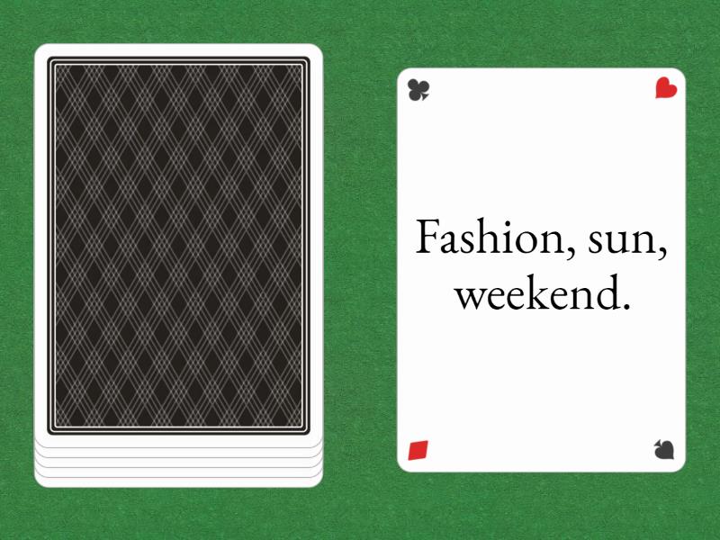 Piano, grandparents, internet., Economy, make up, go shopping, Fashion, sun, weekend., Office, English, extraordinary., Married, to take the metro, Winter, Wine, crafts, dog.