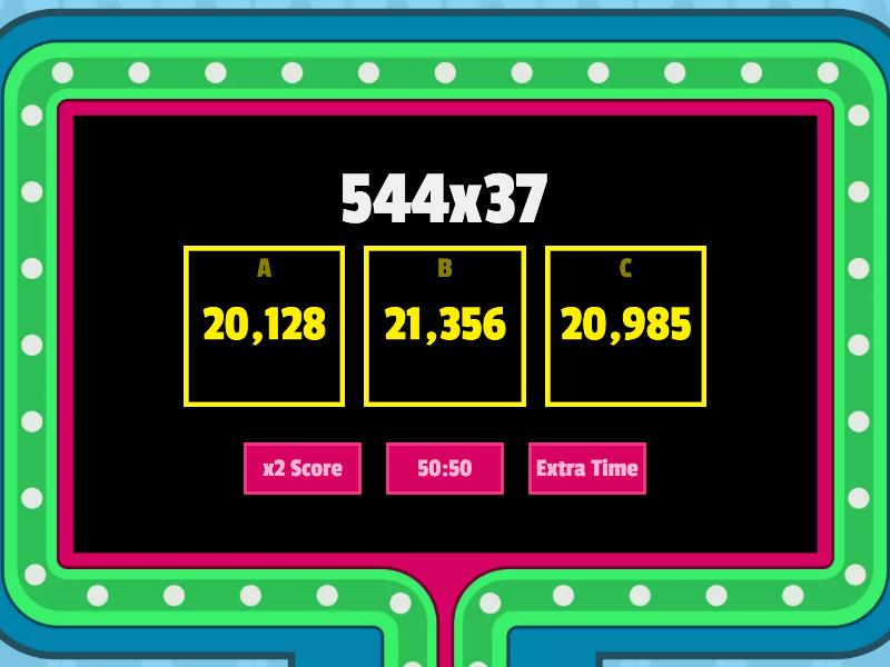 1) 345x32 a) 10,234 b) 45,321 c) 11,040 2) 129x75 a) 8,345 b) 9,675 c) 2,430 3) 752x98 a) 73,696 b) 73,459 c) 34,531 4) 892x63 a) 40,985 b) 56,196 c) 23,578 5) 544x37 a) 20,128 b) 21,356 c) 20,985