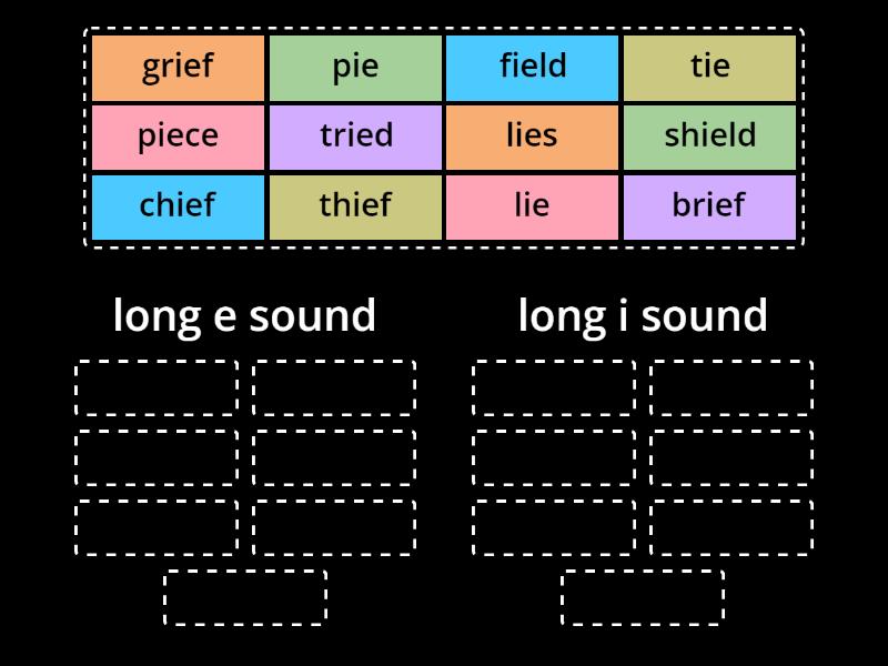 long e sound: brief, chief, piece, thief, shield, grief, field, long i sound : pie, tie, lie, lies, tried,