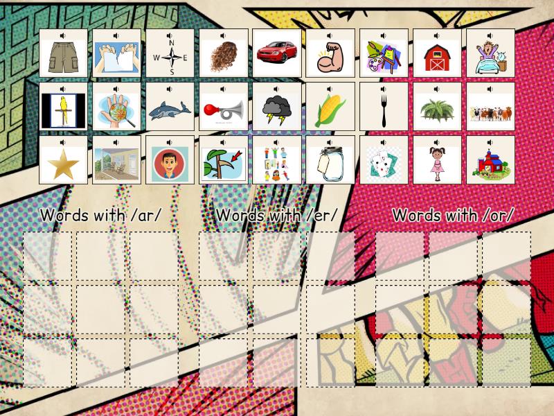 Words with /ar/: , , , , , , , , , Words with /er/: , , , , , , , , , Words with /or/: , , , , , , , , ,