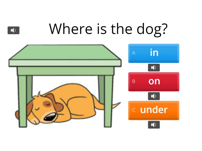 1) Where is the dog? a) in b) on c) under 2) Where is the rabbit? a) in b) on c) under 3) Where is the owl? a) in b) on c) under 4) Where is the ball? a) in b) on c) under 5) Where is the elephant? a) in b) on c) under 6) Where is the cat? a) behind b) between c) in front 7) Where is the dog? a) behind b) between c) in front d) next to 8) Where is the cat? a) behind b) between c) in front d) next to 9) Where is the cat? a) behind b) between c) in front d) next to 10) Where is the rabbit? a) above b) between c) in front d) next to 11) Where is the rat? a) behind b) between c) in front d) next to 12) Where is the dog? a) behind b) between c) in front d) above 13) Where is the dog? a) behind b) between c) above d) next to 14) Where is the bird? a) b) c) d) 15) Where is the hen? a) b) c) d) 16) Where is the cow? a) b) c) d) 17) Where is the cow? a) b) c) d) e) 18) Where is the baby lion? a) b) c) d) e) 19) Where is the baby elephant? a) b) c) d) e) 20) Where is the baby elephant? a) b) c) d) 21) Where is the bear? a) b) c) d) 22) The cat is ..... the fridge. a) b) c) 23) The bird is ....... the cat. a) b) c) d)