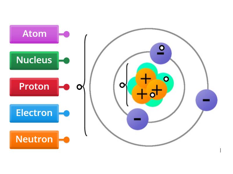 Electron, Proton, Neutron, Nucleus, Atom.