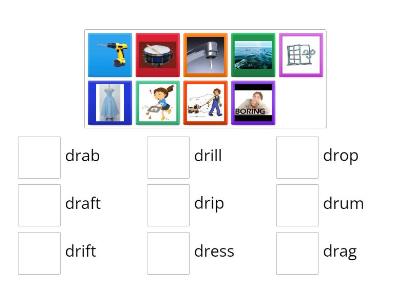 drum, drip, drag, dress, drill, drop, drab, drift, draft,