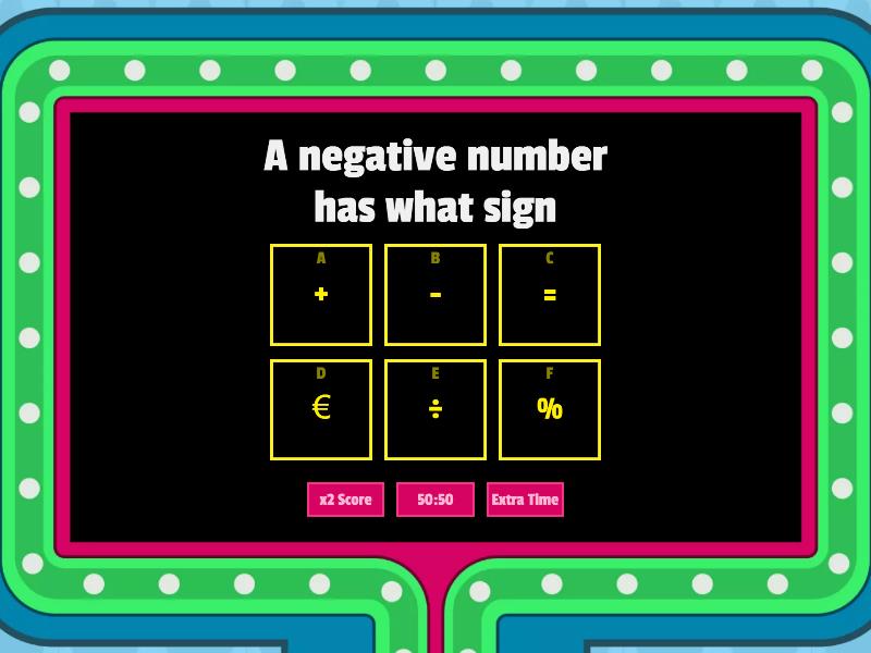 1) A negative number has what sign a) + b) - c) = d) € e) ÷ f) % 2) A positive number has what sign? a) + b) x c) = d) % e) ÷ f) € 3) What does a positive multiplied by a negative give? a) + b) ÷ c) - d) x 4) What does a negative multiplied by a negative guve? a) - b) x c) ÷ d) + 5) What does a positive multiplied by a positive give? a) - b) x c) + d) ÷ 6) An array model can be used for multiplication  a) True b) False 7) Operations are things we do to numbers e.g. adding, subtracting, multiplying divuding etc. a) True b) False 8) What is the correct order of BIMDAS? a) Brackets, indices, multiplication, division, addition and subtraction b) multiplication, division, brackets, addition and subtraction  c) subtraction, addition, multiplication, division, indices and brackets d) indices, brackets, multiplication and division, addition and subtraction