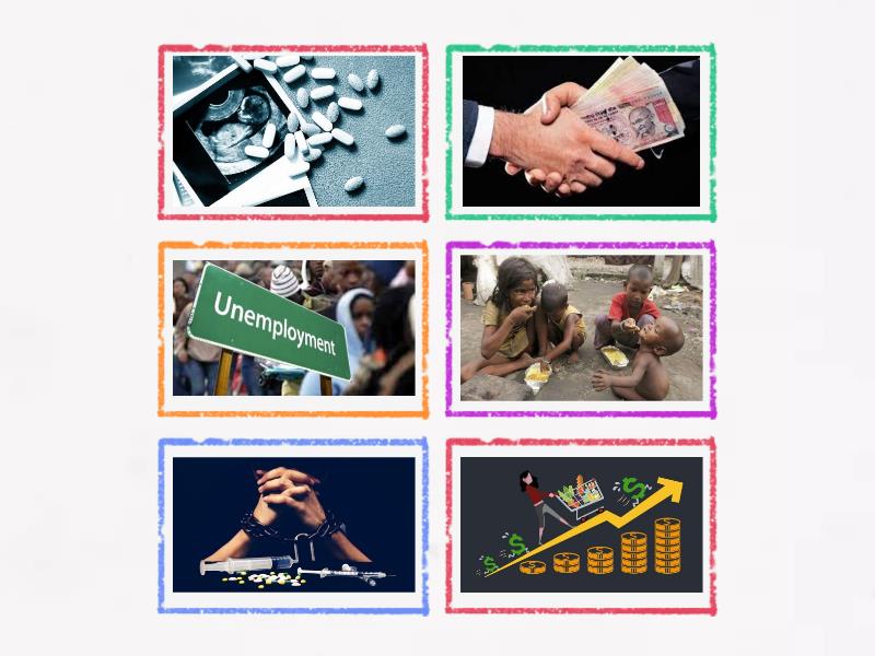 Economic Issue: Unemployment, Moral Issue: Abortion , Social Issue: Poverty, Social Issue: Drug Addiction , Economic Issue: Inflation , Moral Issue: Corruption,